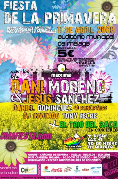 La fiesta de la primaverá se va a celebrar el día 11 de abril en el Auditorio Municipal de Málaga , será a partir de las 12h. Habrá Paella Gratis y Happy Hour 3×2 de 3 a 6 de la tarde en las bebidas.