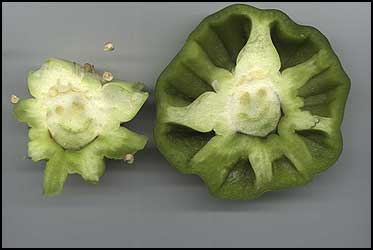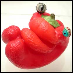 Pues hay algunas formas realmente muy curiosas, y me imagino que para exponerlas las han retocado algo, ¿no?, porque ese pimiento rojo con ojos, o ese ¿caqui? manga pintado a rotulador como que no me lo creo vaya…